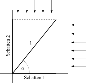 Stabes der Länge 1, einmal unter vertikalem Lichteinfall