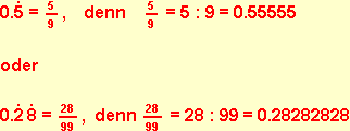 Die Übungsbeispiele sollten dir helfen zu erkennen, wie du periodische Dezimalzahlen in die Buchschreibweise umformen kannst. Hast du die Regel erkannt?