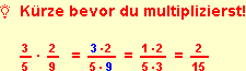 Die Zähler werden miteinander multipliziert; die Nenner werden miteinander multipliziert.
