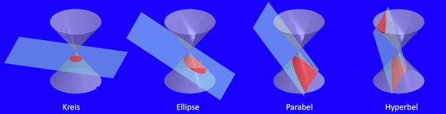 Mit folgenden Einstellungen, kannst du die verschiedenen Kegelschnitte erzeugen