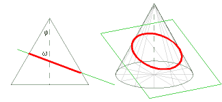 Ist ω > φ, ist die Schnittkurve eine Ellipse.