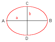 Die längere Achse bezeichnet man als Hauptachse mit der Länge 2a, ihre Schnittpunkte mit der Ellipse sind die Hauptscheitel A und B.