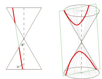 Im Fall ω < φ müssen wir den Kegel zu einem Doppelkegel ergänzen.