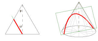 Ist ω = φ (die Ebene ist also parallel zu einer Mantellinie des Kegels), erhalten wir eine Parabel.