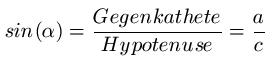 Die Gegenkathete liegt gegenüber des Winkels α.