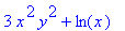 | > | g:=(x,y)->x^2*y^3+y*ln(x); |