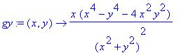 | > | gx:=(x,y)->y*(x^4-y^4+4*x^2*y^2)/((x^2+y^2)^2); |