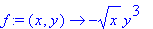 | > | f:=(x,y)->-(x^(1/2)*y^3); |