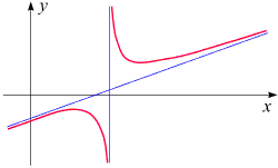 Hier und in den folgenden Graphen sind die Asymptoten blau gekennzeichnet.