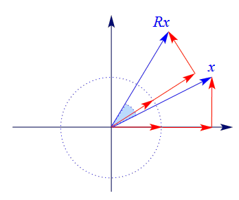 $$Rx=R(x_1e_1+x_2e_2)=x_1Re_1+x_2Re_2\,{\sf\small.}$$