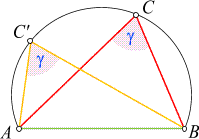 Nach dem Satz von Thales besitzt das Dreieck ABC'