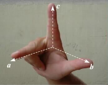 orientiert, so stellt der Zeigefinger die Orientierung von