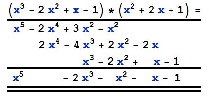 Zur Erinnerung beim Multiplizieren wird jeder Eintrag des zweiten Polynoms mit den Einträgen im ersten Polynom multiplliziert!
