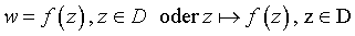 Zwecks Veranschaulichung einer komplexwertigen Funktion betrachtet man die Abbildung des Definitionsbereiches D aus der