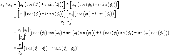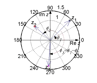 Geometrisch läßt sich das Ergebnis der Division als die Drehung des Vektors der Zahl z1 um den Winkel Arg z2