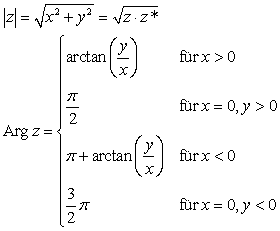 | z = 0 hat |z| = 0 und Arg z beliebig |