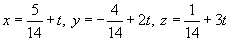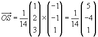 S ist ein Geradenpunkt g mit S = (5/14, -4/14, 1/14)T. Die Parameterdarstellung