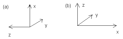 Welches der abgebildeten rechtwinkligen Koordinatensysteme ist ein Rechtssystem, welches ein Linkssystem?
