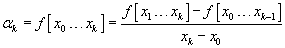 α0 = y0; α1 = (y1 - y0)/(x1 - x0); ...