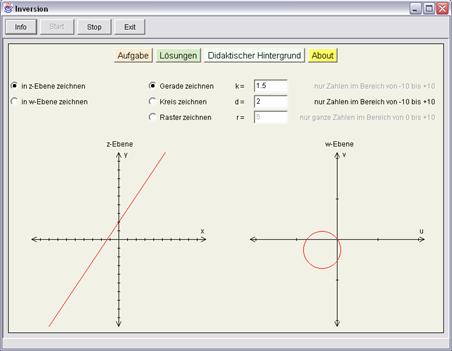 2. Doppelklicken Sie die Datei „Inversion.html“, das Applet wird geöffnet (siehe Abb. 2) und Sie können nun die, unter Übersicht beschriebenen, Funktionen zeichnen lassen.