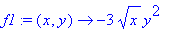 | > | f:=(x,y)->-(x^(1/2)*y^3); |