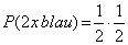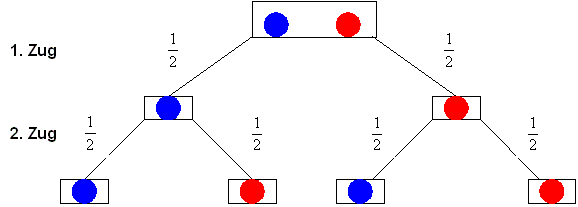 Es gibt 4 Möglichkeiten: 1) man zieht 2 mal blau 2) man zieht zuerst blau dann rot 3) man zieht zuerst rot dann blau 4) man zieht 2 mal rot Für uns günstig ist jedoch nur die erste der 4 Möglichkeiten