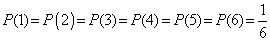 Beim Würfel ist ebenfalls das Würfeln jeder einzelnen Zahl gleich wahrscheinlich: