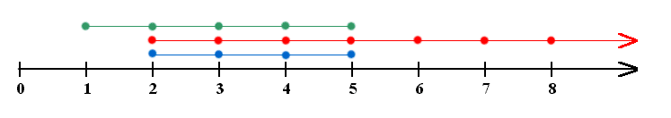 Da die erste UND die zweite Ungleichung erfüllt sein müssen, ist die Lösungsmenge die DURCHSCHNITTSMENGE der beiden Teillösungsmengen L1 und L2, also L1 Ç L2. Für unser Beispiel heißt das: