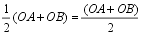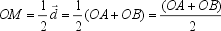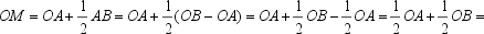 Man addiert zum Ortsvektor OA den halben Vektor AB. Der Summenvektor ist der Ortsvektor OM, der zum Mittelpunkt M von AB zeigt. |