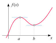 Diese Funktion besitzt ein lobales Maximum an der Stelle a, ein lokales Minimum an der Stelle b und lokales Maximum an der Stelle c.