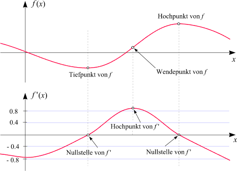 Sie gibt uns Auskunft über Maxima und Mimina (die gemeinsam als "Extrema" bezeichnet werden),