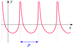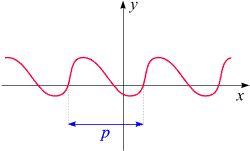 Die (kleinste) Periode p ist eingezeichnet. Hier ein Beispiel für eine Funktion, die nicht auf ganz R definiert ist: