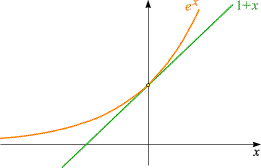 Damit ist gemeint, dass sich für kleine x die beiden Ausdrücke ex und 1+ x nur um eine Zahl unterscheiden, deren Größenordnung noch viel kleiner als x ist. Überprüfen wir das numerisch für x = 0.01: Mit dem Zahlenwert (13) berechnen wir e0.01 = 1.01005016..., was sich von 1 + 0.01 nur um 0.00005016... unterscheidet, und das ist wesentlich kleiner als 0.01 ! Je kleiner x ist, umso besser gilt die Näherung (15). Für andere Basen ist das nicht der Fall: Ist a ¹ e, so gilt für kleine x die Näherungsformel Aus der Definition (14) ergibt sich auch eine Möglichkeit, e zu berechnen. Sie ist im obigen Exkurs genauer begründet. Für den Fall, dass Sie den Exkurs überspringen, wollen wir diese Methode (ohne Beweis) kurz skizzieren: