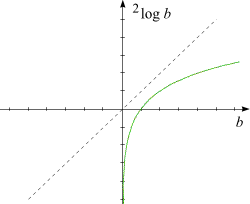 Eine weitere Eigenschaft des Logarithmus, die er von der Exponentialfunktion geerbt hat, können wir anhand des oben dargestellten Graphen der Funktion 2log erkennen: