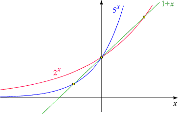 mit den Graphen der beiden Exponentialfunktionen je zwei Schnittpunkte hat.