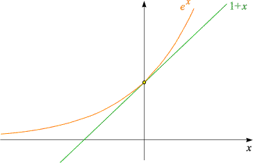 im Punkt (0,1) nicht tangential zum Graphen von 1 + x,