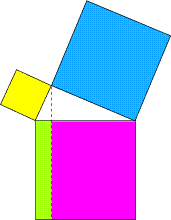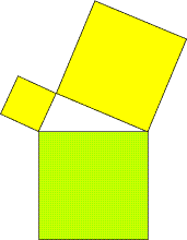 der beiden gelben Quadrate gleich dem Flächeninhalt des grünen Quadrats ist.