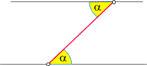 : Werden zwei parallele Geraden von einer dritten Geraden geschnitten, so entstehen gemäß der folgenden Skizze zwei gleiche Winkel:
