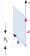 b nicht von der z-Komponente b3 von b abhängt. Der Grund dafür ist einfach: Ändern wir b3, so ändert sich weder der Flächeninhalt des von a und b aufgespannten Parallelogramms,