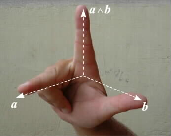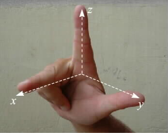 orientiert, so stellt der Zeigefinger die Orientierung des