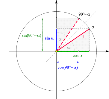 Daher vertauschen Sinus und Cosinus