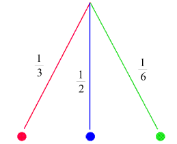 Die möglichen Versuchsausgänge sind die 3 Farben der in der Urne enthaltenen Kugeln: